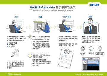 新款 BAUR 软件 4 保证可以让您通过自己的诊断理念快速、统一地检测和评估电缆状态。因为通过直观的操作设计一方面可以实现高效的测量过程,另一方面可以对电缆电网进行精确的状态监控,所以能为资产管理者和现场测量人员提供支持。快闪:应用和评估将 BAUR 软件 4 提升到了一个新的水平,这样便可以进一步优化对电缆网络的以状态为导向的维护。